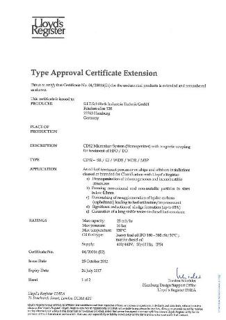 S.I.T has asked Lloyds Register 10 Years ago to issue a Type Approval. The reason was to finally independently confirm the efficiency and function of our CD92 Systems. After 18 months of investigation and testing of our systems LR has issued the TA and confirmed that our systems i.e. reduce the sludge generation up to 85%, generate Diesel and Water into a longlasting Emulsion. All experiences made by LR were later on described in a Technical Paper in which LR explains the background of homogenisation and the benefits. If you`d like to receive this Techncial Paper, please send us an e-mail and we will immediately send to you.